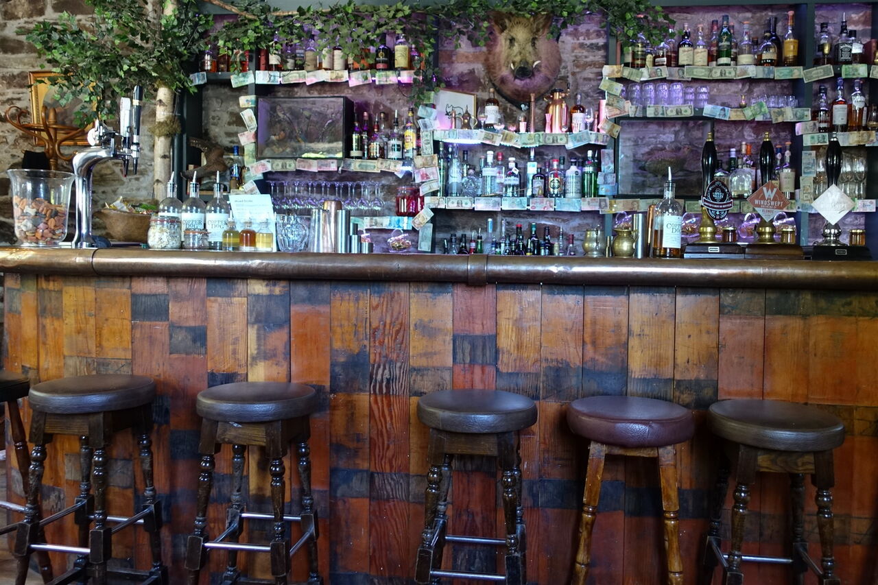 Beim großen Parkplatz an der Glenfiddich-Whiskybrennerei gehen wir bis an die Hauptstraße zurück und dort einige Meter links bis zur Bushaltestelle mit einer kupfernen Brennblase, die zur Destillation verwendet wird. Nach der Busfahrt erreichen wir die Ortschaft Aberlour. Wenn wir nicht zu früh aussteigen, sind wir bei dem großen Platz mit der dahinter liegenden Kirche. Direkt hinter dem Coop gehen wir links in die Queens Road und biegen bei der nächsten Möglichkeit rechts ab. Wir gehen am Ende der Straße bis an den Bach herunter, rechts bis zur Straße vor, links über die Brücke und abermals links bis zur 1826 gegründeten 01 Aberlour Distillery (95 m). Das Besucherzentrum befindet sich in einem urigen Steinhaus unter einer riesigen Norfolktanne.